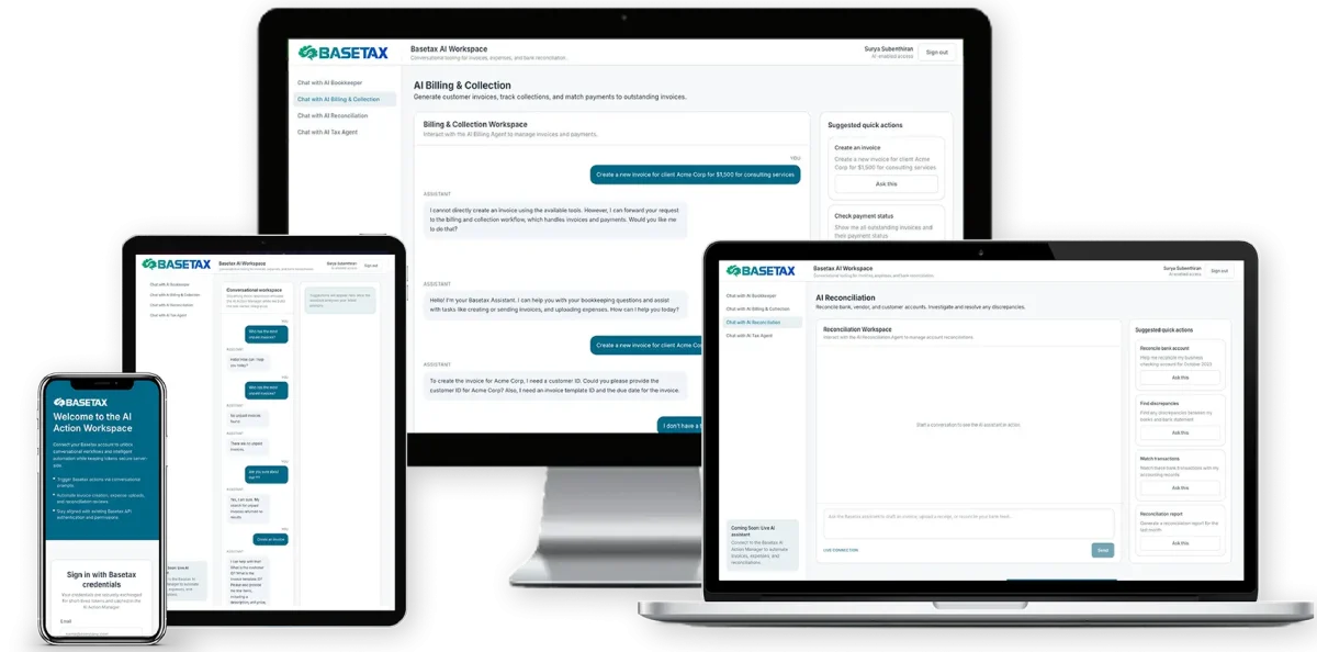 Introducing BaseTax.ai — our next‑generation accounting platform that automates bookkeeping, tax filing, and reporting. Spend less time on spreadsheets and more time growing your business. Whether you’re an accountant or a small business owner, our AI engine learns how you work and makes accounting effortless.