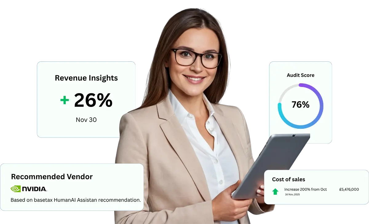 With real-time syncing of your bank accounts, e-commerce platforms, and POS systems, Basetax.ai integrates all your financial tools into one simple, automated platform